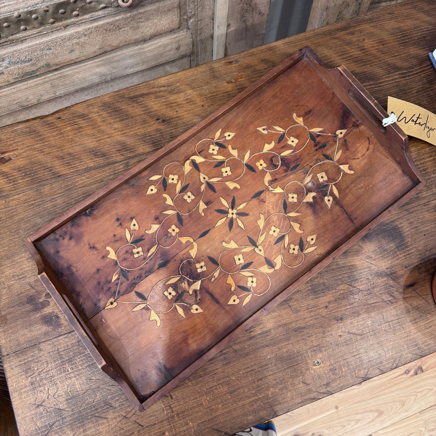 Vintage French Wooden Tray Marquetry - Elegant Home Decor