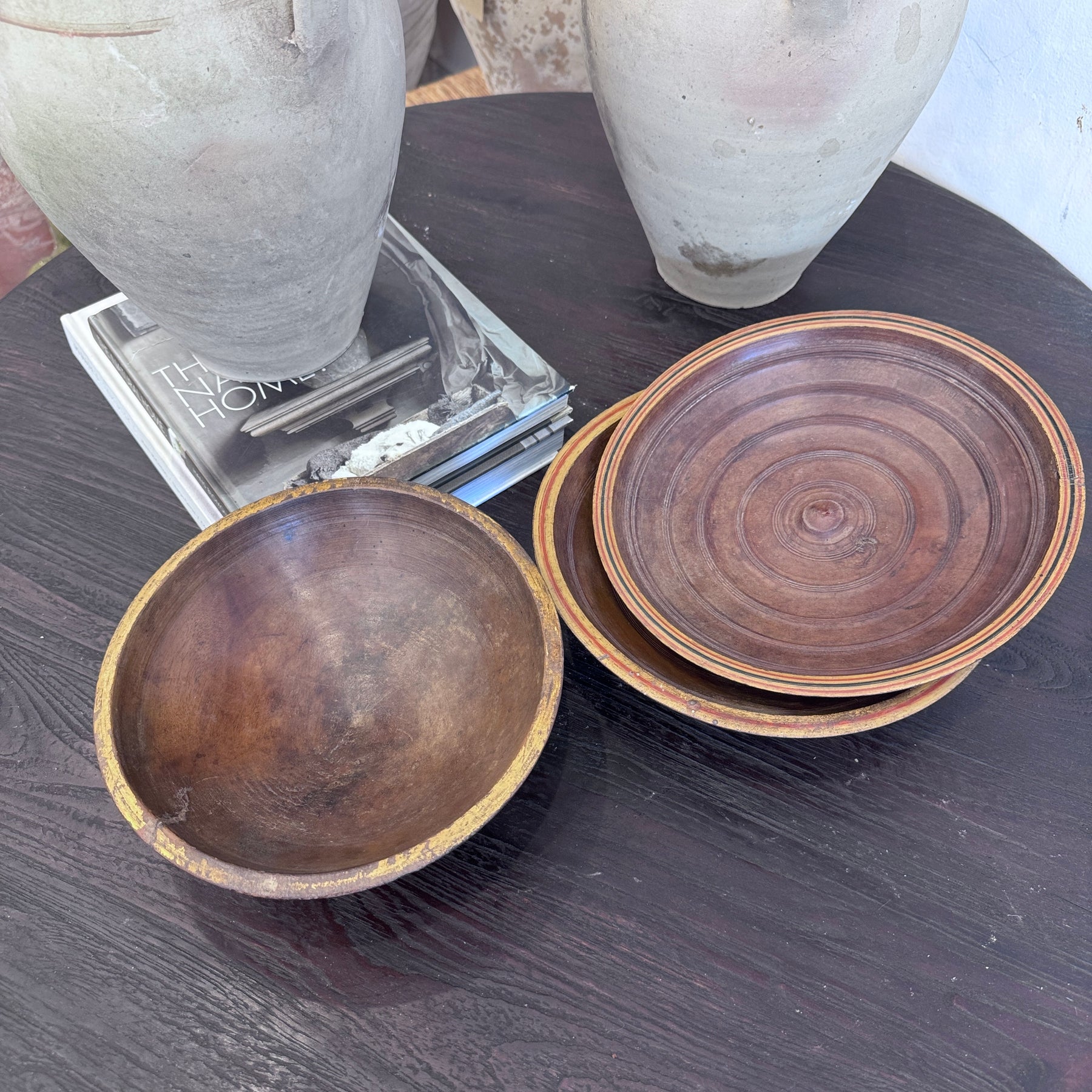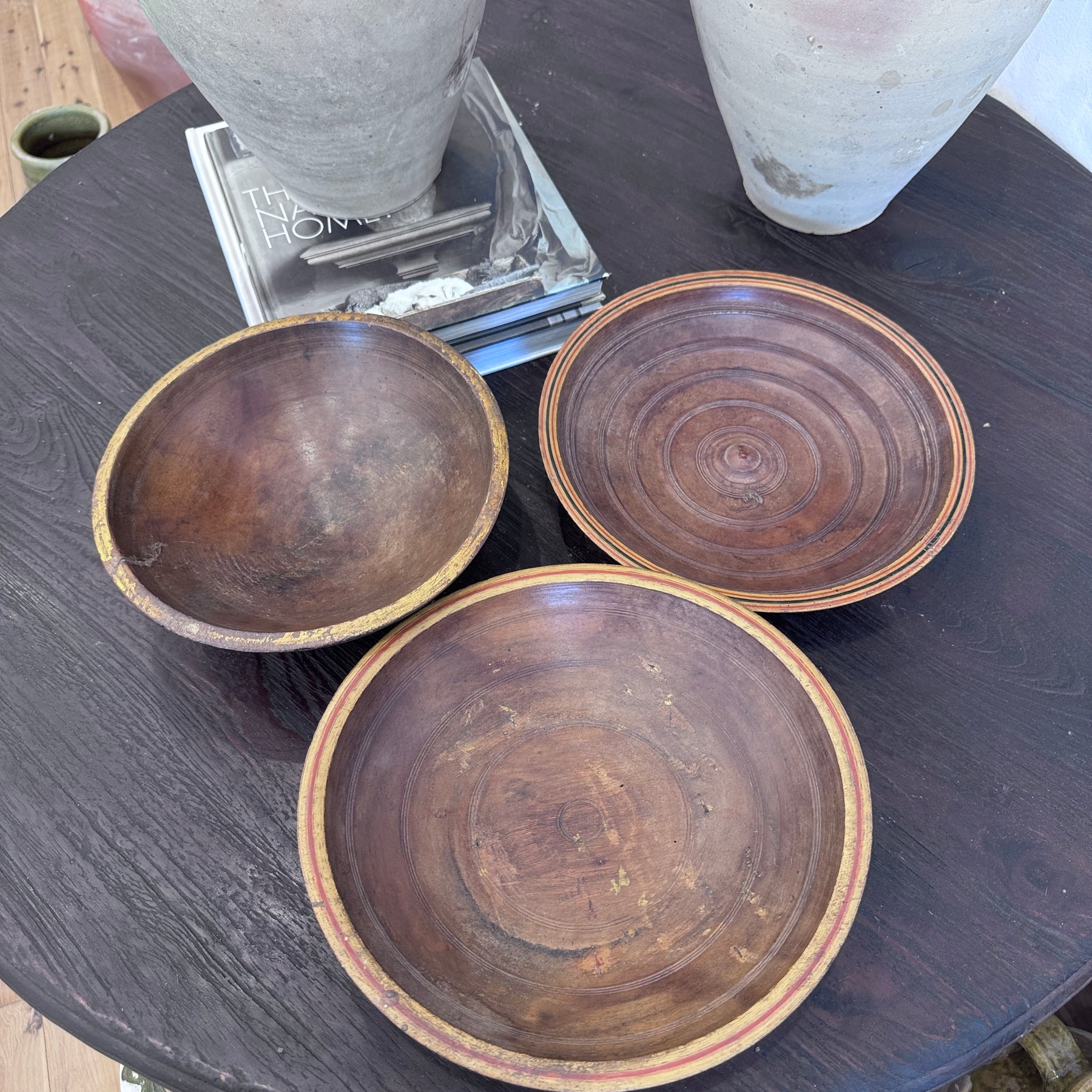 Each bowl is unique showing signs of age and use. Made from acacia wood and used for serving and food preparation