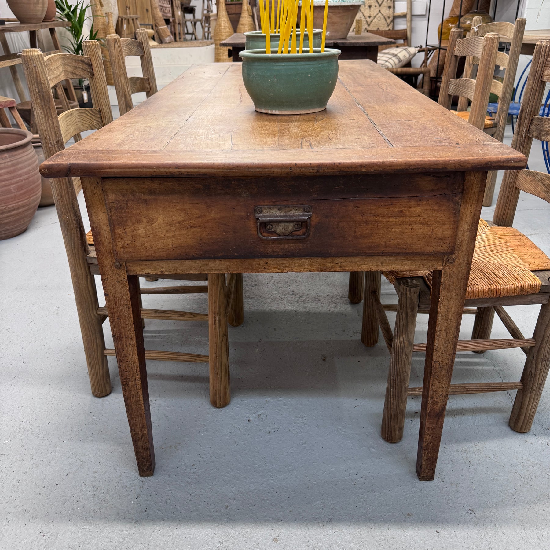 Bring timeless charm to your dining space with this antique provincial French elm refectory kitchen dining table.