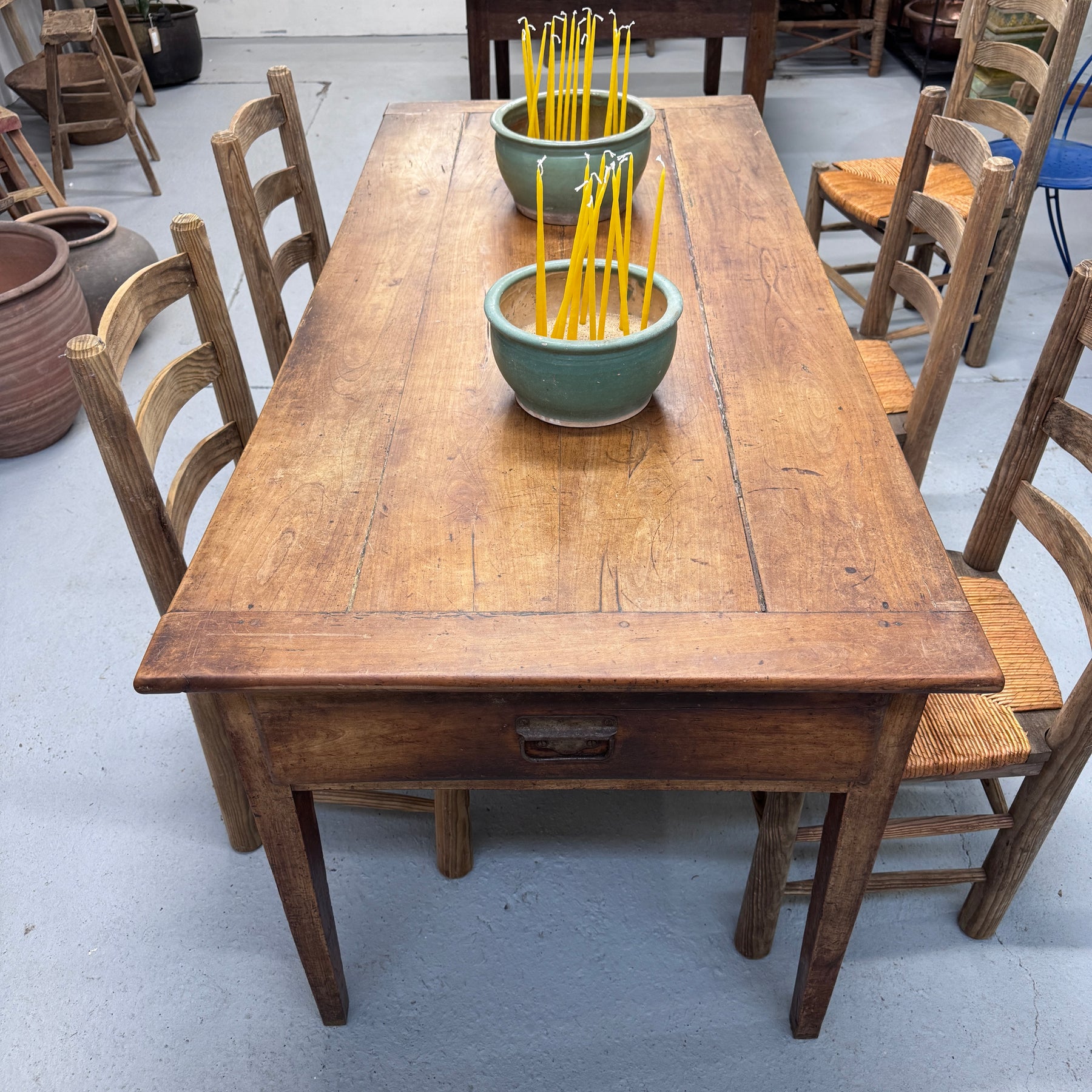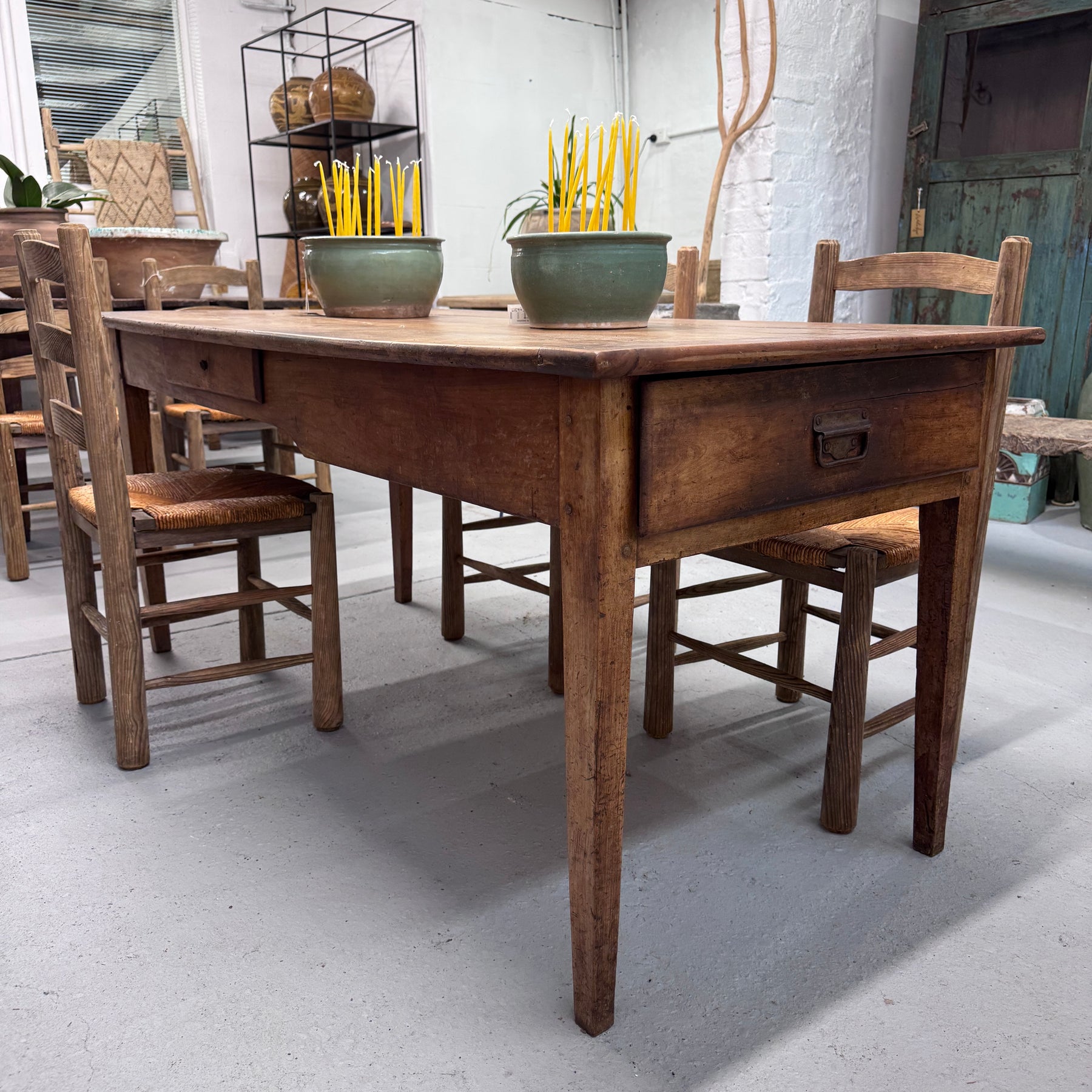 Rustic 19Th Century Oak Farmhouse Table With Side Drawer