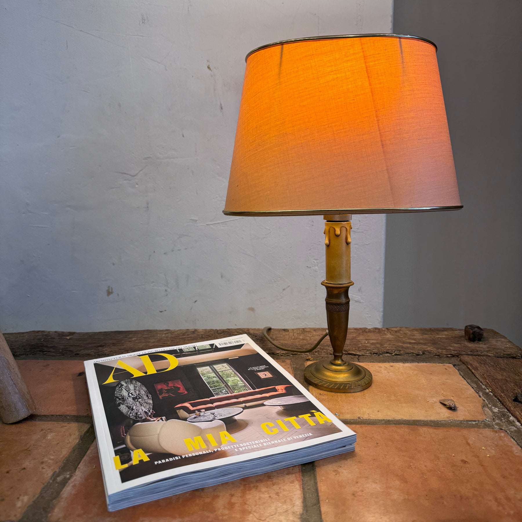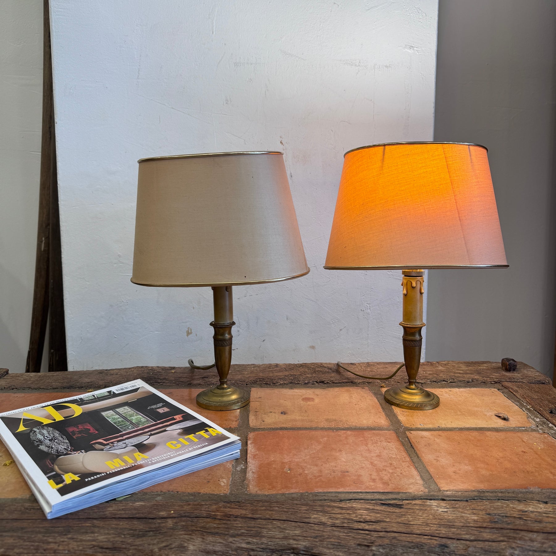 Discover our Vintage Brass Candle Base Lamps, a set of 2 from the 1960s. Each lamp features a parchment shade and a brass candle-style base. Perfect for adding a touch of vintage elegance to your home decor.