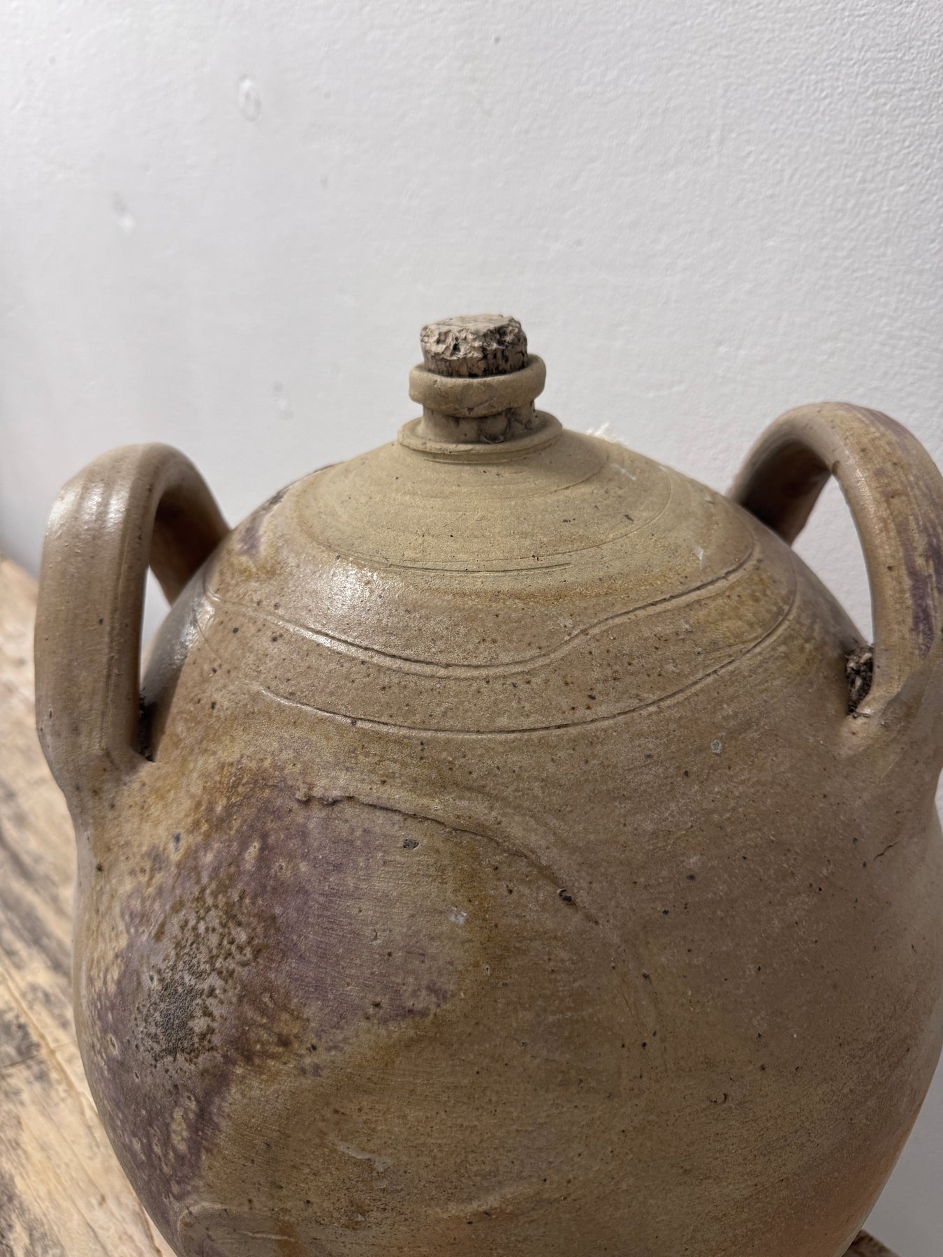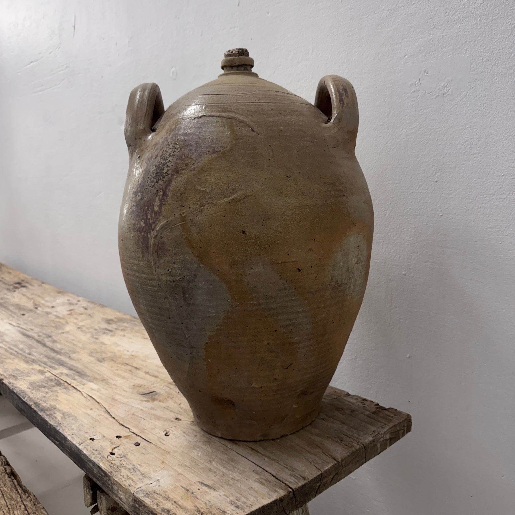 This vintage French brown wine pot with handles exudes rustic charm and timeless elegance. Crafted with care, its warm brown tones and sturdy handles make it a beautiful decorative vessel with a relaxed, authentic feel.