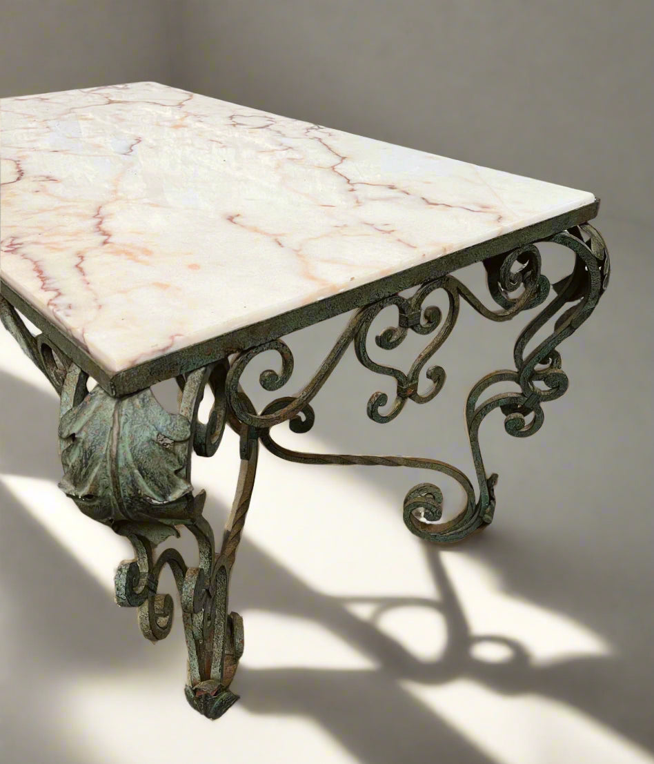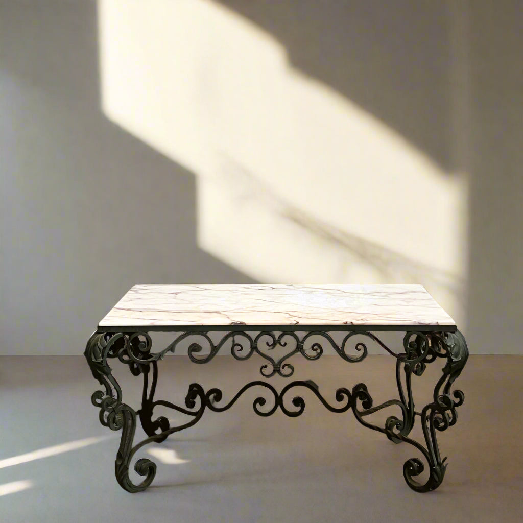 French 1940s Wrought-Iron and Marble-Top Coffee Table