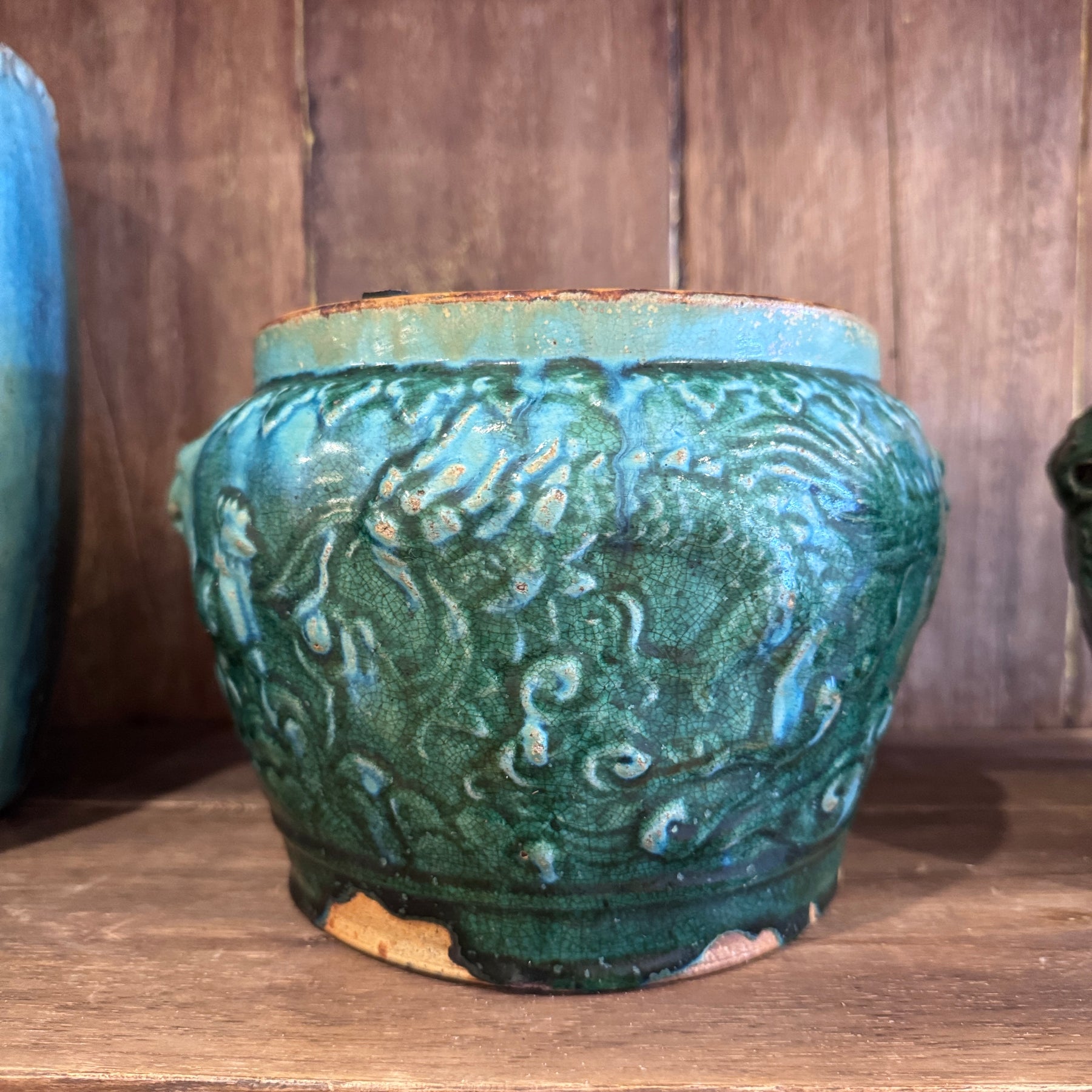 Discover a remarkable collection of antique ginger jars sourced from Indonesia, each a testament to 19th-century Chinese craftsmanship. These open vessels showcase intricate relief work depicting forest animals—a signature design element that speaks to the artistry of the period. Dating to the late 1800s, these pieces represent an exceptional rarity in the antique market, combining historical significance with visual storytelling. The quality of the ceramic work is outstanding, with each jar displaying the patina and character that only genuine age can bestow. Remarkably well-preserved, they arrive in great condition, making them ideal for collectors seeking authentic pieces with provenance and presence. Whether displayed as a curated collection or individually, these ginger jars bring warmth, narrative, and timeless elegance to any interior.